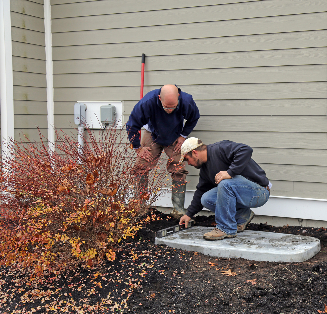 Concrete pads for generators ac units landscaping.